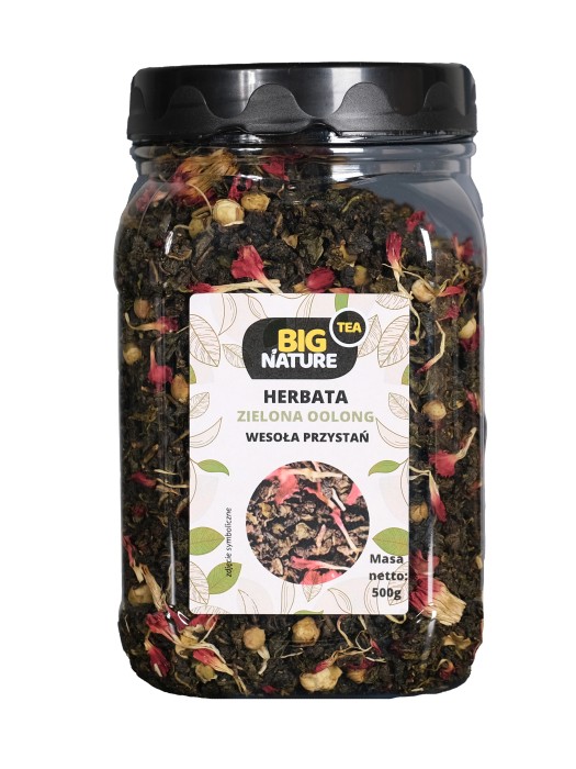 Opis: Opakowanie zawiera 500g zielonej herbaty oolong "Wesoła Przystań".