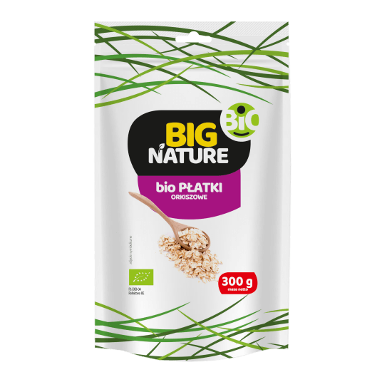 Składniki: 100% płatki orkiszowe pochodzące z kontrolowanych upraw ekologicznych.