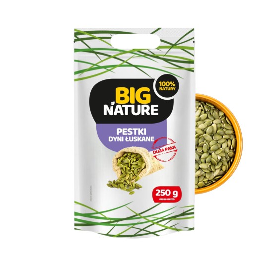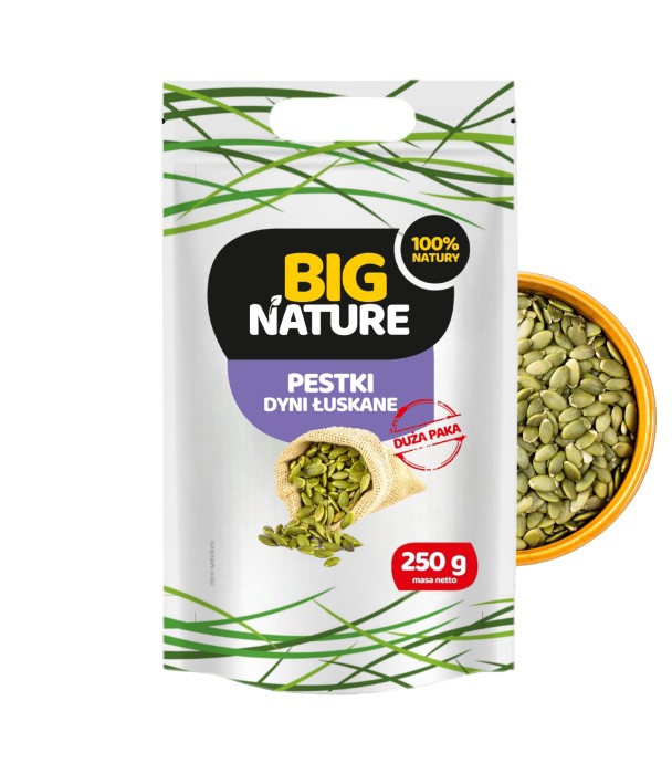 Opis: Pestki dyni to naturalna przekąska pełna wartościowych składników odżywczych, idealna dla osób dbających o zdrowie. Doskonałe jako dodatek do sałatek, musli, jogurtów czy smoothie, a także jako samodzielna przekąska. Wybierz pestki dyni – pyszne i pełne mocy natury! Opakowanie zawiera 250g pestek dyni łuskanych
