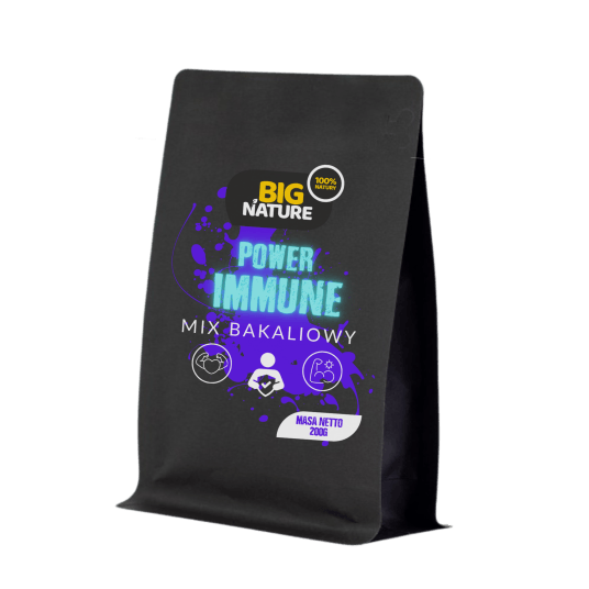 Wzmocnij swoją odporność i ochronę organizmu dzięki naszej potężnej mieszance bakalii "Power Immune Fusion". Ta wyjątkowa kompozycja bakalii została stworzona, aby dostarczyć Ci niezbędnych składników odżywczych, które wspierają zdrowy układ odpornościowy.