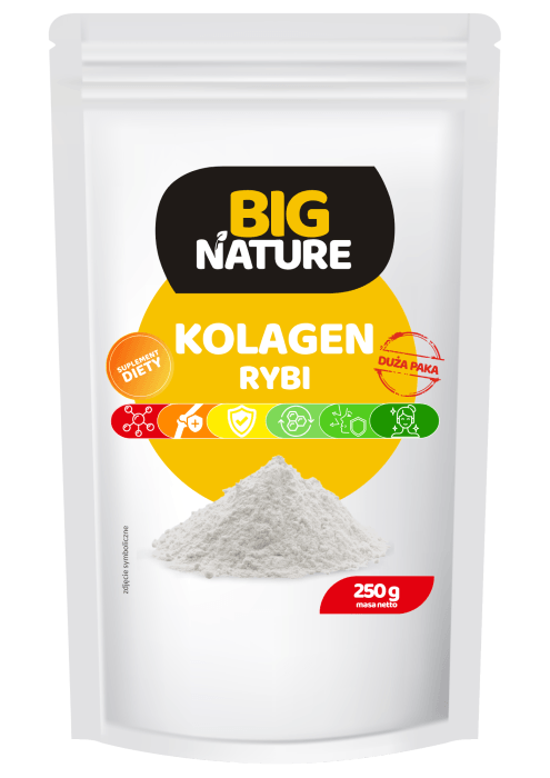 Kolagen to najważniejsze białko strukturalne w ludzkim organizmie – odpowiada za jędrność skóry, zdrowie stawów, kości i elastyczność tkanek. Z wiekiem jego naturalna produkcja spada, co może prowadzić do pogorszenia wyglądu cery, łamliwości włosów i paznokci, a także problemów ze stawami. Nasz suplement zawiera aż 97% kolagenu rybiego w czystej postaci oraz 3% witaminy C, która wspomaga syntezę kolagenu i chroni komórki przed stresem oksydacyjnym.