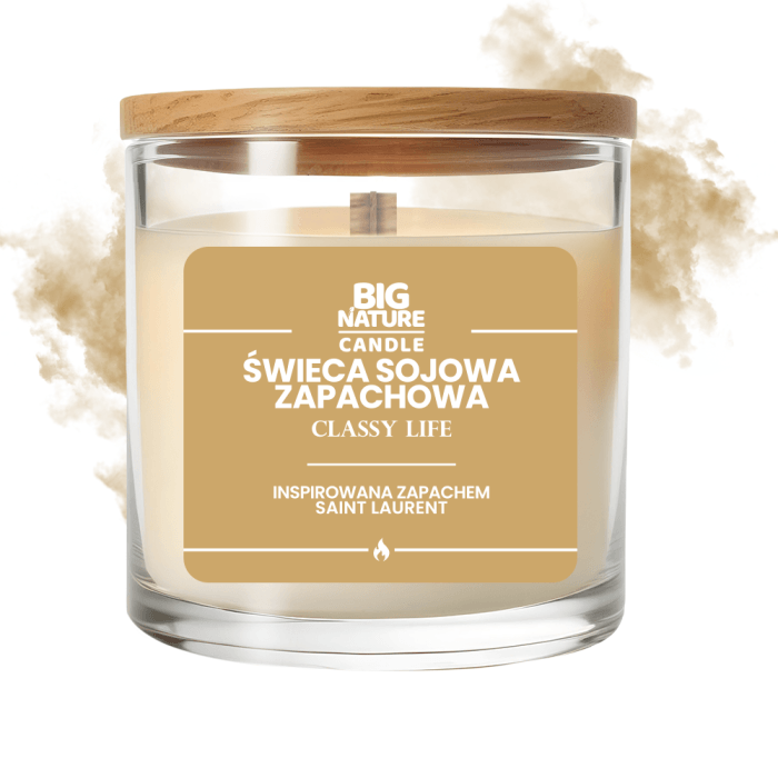 Oprócz swojej funkcji zapachowej, nasze świeczki stanowią doskonałą dekorację dla każdego domu, dzięki swej eleganckiej minimalistycznej etykiecie. Wyjątkowy design sprawia, że świece nie tylko otulają pomieszczenie ulubionym zapachem inspirowanym perfumem Saint Laurent, lecz również dodają subtelnej finezji i uroku każdemu wnętrzu, podkreślając minimalistyczny styl i elegancję przestrzeni."