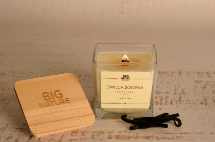 W naszych świecach wykorzystujemy naturalny wosk sojowy. Warto podkreślić, że ten wosk jest całkowicie bezpieczny dla ludzi. Co więcej, olej sojowy, który stanowi bazę dla wosku, jest znany z jego właściwości leczniczych, wykorzystywanych w aromaterapii oraz kosmetyce.