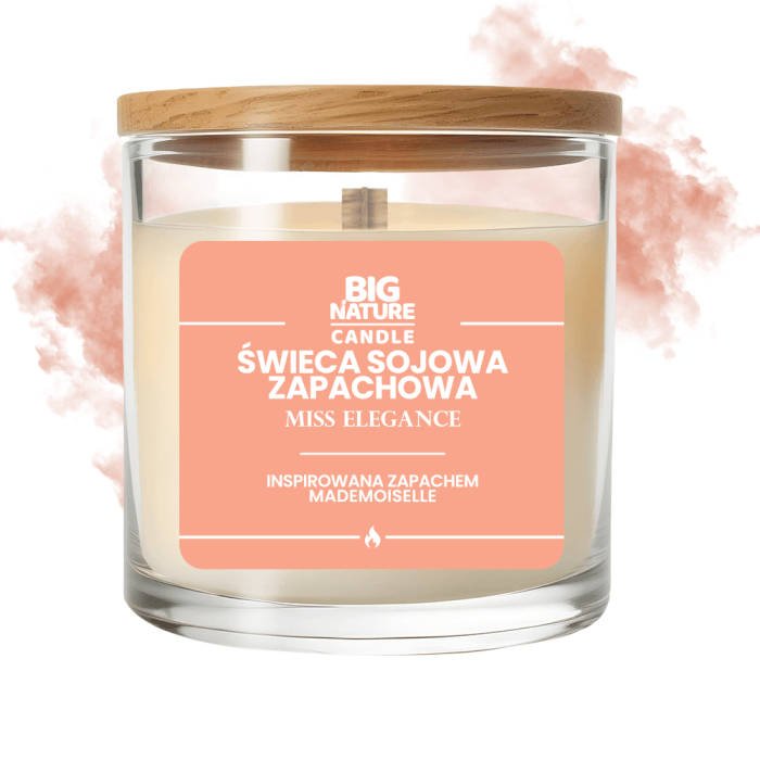 Oprócz swojej funkcji zapachowej, nasze świeczki stanowią doskonałą dekorację dla każdego domu, dzięki swej eleganckiej minimalistycznej etykiecie. Wyjątkowy design sprawia, że świece nie tylko otulają pomieszczenie ulubionym zapachem inspirowanym perfumem Mademoiselle, lecz również dodają subtelnej finezji i uroku każdemu wnętrzu, podkreślając minimalistyczny styl i elegancję przestrzeni."