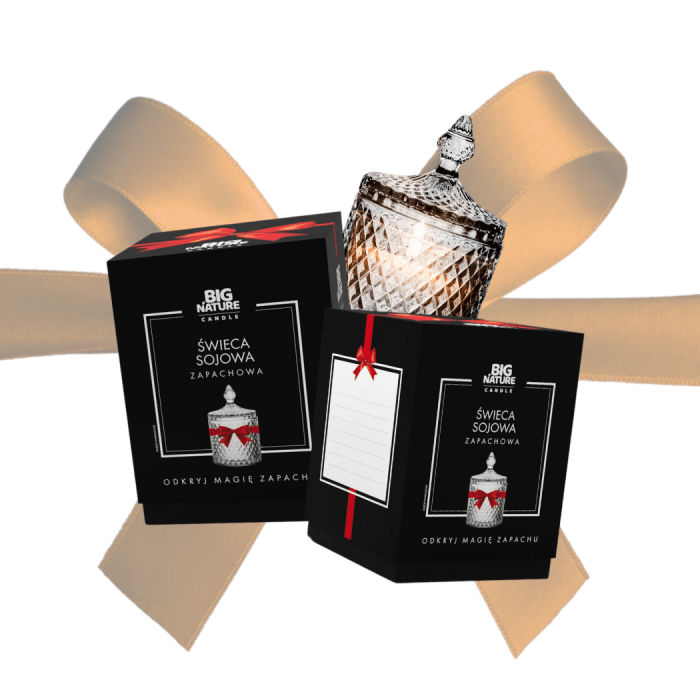 Nasza świeca sojowa kryje się w ekskluzywnym czarnym pudełku, które nie tylko chroni skarb w postaci świecy, ale także podkreśla jej wyjątkowość. To nie jest tylko opakowanie, to rytuał otwierania, który rozpoczyna niezwykłą podróż zapachową.