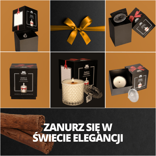 Zanurz się w świecie naszych świec sojowych prezentowych, gdzie elegancja i doskonałość spotykają się z niezapomnianym zapachem. Nasze wyjątkowe kompozycje zapachowe są owocem pasji, a każda świeca to dzieło sztuki, które czuje się każdym zmysłem