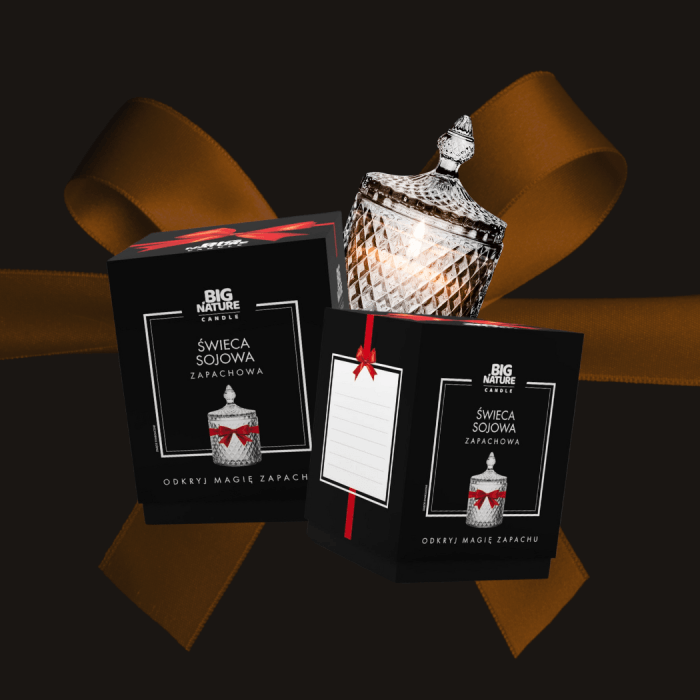 Nasza świeca sojowa kryje się w ekskluzywnym czarnym pudełku, które nie tylko chroni skarb w postaci świecy, ale także podkreśla jej wyjątkowość. To nie jest tylko opakowanie, to rytuał otwierania, który rozpoczyna niezwykłą podróż zapachową.