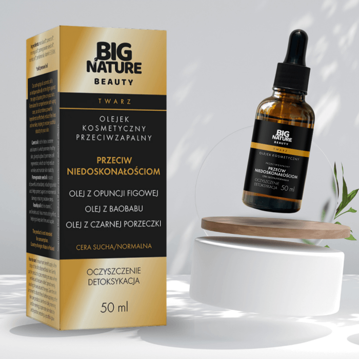 Olej z opuncji figowej – bogaty w przeciwutleniacze, witaminy E i K, co sprawia, że doskonale działa przeciwzapalnie. Pomaga w redukcji stanów zapalnych skóry, łagodzi podrażnienia, wspomaga regeneracje komórek.