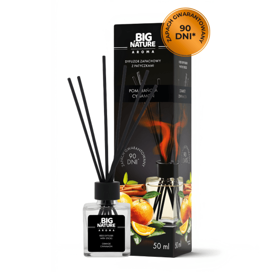 Poznaj nasz luksusowy Dyfuzor Zapachowy o pojemności 50 ml z patyczkami, zapakowany w stylowy, czarny kartonik – idealny do wnętrz, które łączą wyrafinowanie z przytulną atmosferą. Wyjątkowa kompozycja zapachowa pomarańczy i cynamonu wprowadza harmonię świeżości i ciepła, tworząc doskonały nastrój o każdej porze roku.