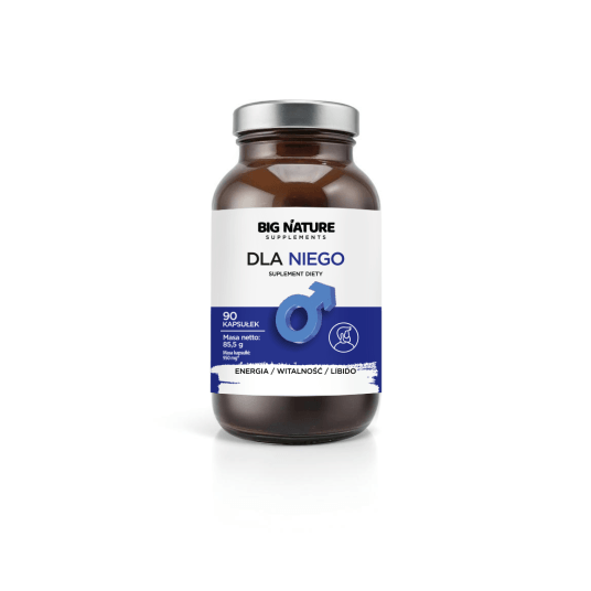 Suplement diety stworzony z myślą o mężczyznach, którzy pragną wzmocnić swoje zdrowie i kondycję fizyczną. Zawiera składniki aktywne, które wspierają prawidłowe funkcjonowanie seksualne, poprawiają poziom energii i witalności oraz wspomagają ogólne samopoczucie. Formuła Dla Niego oparta jest na naturalnych ekstraktach, które od wieków wykorzystywane są w medycynie tradycyjnej dla wsparcia organizmu. Kordyceps chiński, znany ze swoich właściwości zwiększających wytrzymałość i energię, wspomaga organizm w stresujących chwilach. Catuaba, zioło wykorzystywane w brazylijskiej medycynie, pomaga w utrzymaniu równowagi emocjonalnej, a buzdyganek naziemny poprawia libido i wspiera funkcje seksualne.