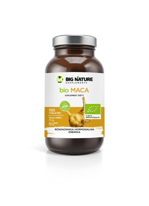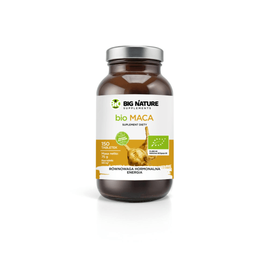 BIO Maca to roślina adaptogenna, która zyskała popularność dzięki swoim wszechstronnym właściwościom. Jest ceniona za swoje pozytywne działanie na poziom energii, wytrzymałość oraz równowagę hormonalną. Regularne stosowanie może poprawić nastrój, wspierać koncentrację i ogólne samopoczucie, szczególnie w okresach zwiększonego wysiłku. Maca to prawdziwa naturalna energia, która przyczynia się do lepszego funkcjonowania organizmu, wspomagając witalność i poprawiając zdolności adaptacyjne. Stosowana regularnie, może być doskonałym wsparciem w codziennej trosce o zdrowie.