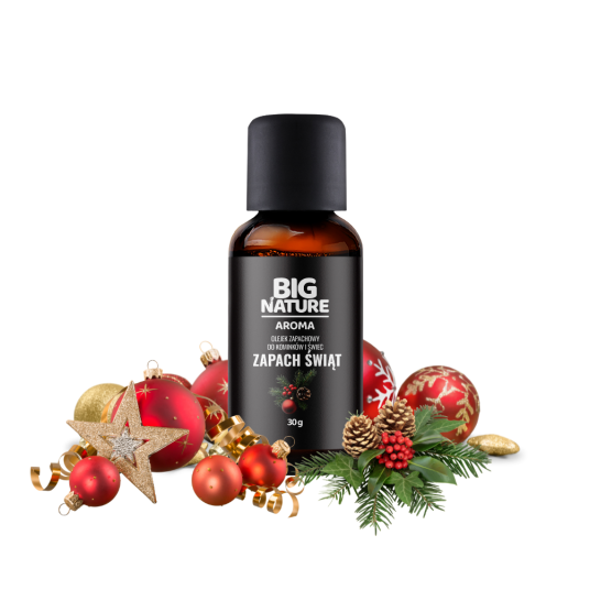 Aromatyczna kompozycja świątecznych nut - cynamon, goździki, pomarańcza i wanilia. Idealny do kominków, świec i aromaterapii. Poprawia nastrój i tworzy przytulną atmosferę.