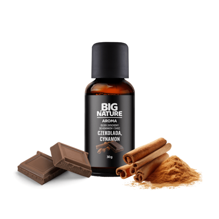 Olejek o zapachu czekolady i cynamonu to niezwykła kompozycja, w której aksamitna słodycz czekolady spotyka się z korzenną, lekko pikantną nutą cynamonu. To połączenie tworzy zapach pełen ciepła, harmonii i przyjemności – doskonały na chłodne wieczory, świąteczne chwile czy relaks po długim dniu.