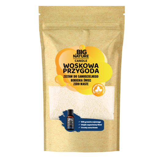 „Woskowa Przygoda” to kompletny zestaw DIY, który zawiera 500 g wosku sojowego, 3 knoty sznurkowe oraz aromatyczny olejek Wild Spirit, inspirowany zapachem Dior Sauvage. Idealny do świec w szkle, ceramice i formach. Możesz dowolnie uzupełniać i personalizować swoje kompozycje zapachowe. Kreatywna zabawa, piękna dekoracja i wyjątkowy prezent — wszystko w jednym zestawie!