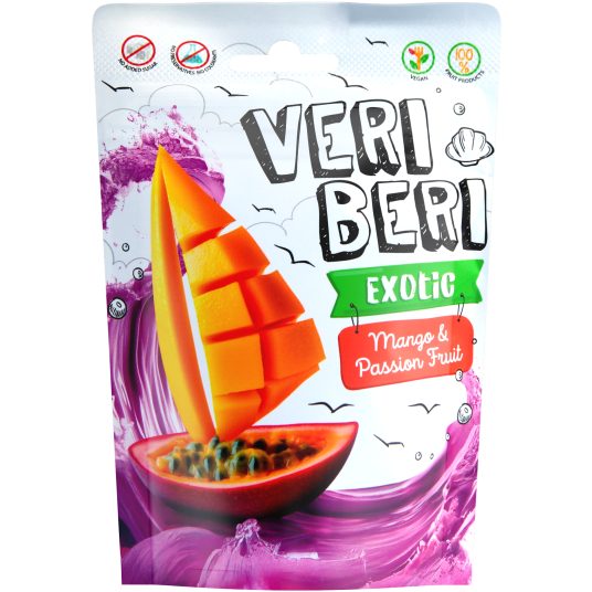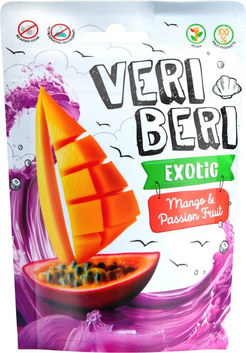 Bezglutenowe żelki owocowe w formie pysznych pasków z kokosem o smaku mango i marakui, stworzone wyłącznie ze składników owocowych. Bez dodatku cukru, konserwantów, barwników i sztucznych dodatków – idealne dla dzieci i dorosłych szukających zdrowej alternatywy dla słodyczy.