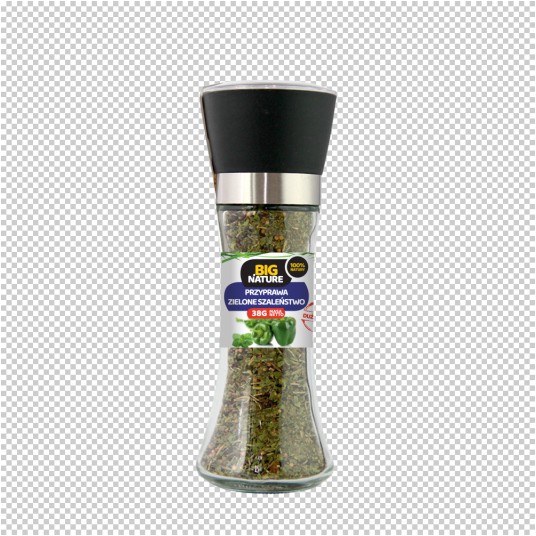 Od niedawna wiadomo, że kolor tego co jemy, jest równie ważny jak wartość odżywcza pokarmu. Zielone warzywa zawierają chlorofil. Dlatego warto do każdego posiłku dodawać choćby niewielką ilość „Zielonego szaleństwa”, a będziemy jeść smacznie i zdrowo. Przyprawa znajduje się w ceramicznym młynku wielokrotnego wykorzystania. Grubość mielenia zawartości można samemu regulować pokrętłem w młynku.