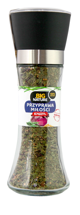 Nadaje potrawom niesamowity smak i aromat. Zioła wyróżniają się orzeźwiającym aromatem, za to burak oraz gorczyca świetnie komponują się z sałatką czy obiadem. Dodaj przyprawę miłości do przygotowanej wykwintnej kolacji i podaj ukochanej osobie... Przyprawa znajduje się w ceramicznym młynku wielokrotnego wykorzystania. Grubość mielenia zawartości można samemu regulować pokrętłem w młynku.