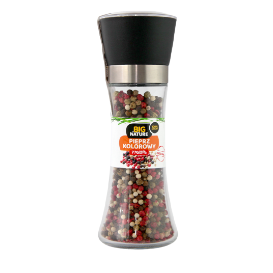 Barwa ziaren pieprzu zależy od momentu ich zbierania, a także od późniejszych zabiegów, którym ziarna są poddawane. Każdy z rodzajów pieprzu występujący w mieszance wyróżnia się innym natężeniem smaku i aromatu. Dlatego pieprz kolorowy ziarnisty to kompozycja ostrzejszych i łagodniejszych nut smakowych, które zadowolą najbardziej wymagających smakoszy. Pieprz kolorowy ziarnisty nadaje potrawom nie tylko wyszukany charakter, ale także podkreśla ich atrakcyjny wygląd. Pieprz kolorowy jest powszechnie stosowaną uniwersalną przyprawą w kuchni, dodawać go można niemal do wszystkich potraw.