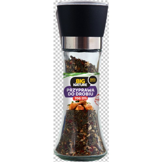 Mięso z drobiu jest bardzo popularnym i wysoko cenionym surowcem kulinarnym. Szczególnie polecane, z uwagi na niską kaloryczność i delikatny smak, jest mięso z kurczaka oraz indyka. Również smaczne potrawy można przyrządzić z kaczek i gęsi. Dla wzbogacenia smaku potraw z drobiu, nadania im oryginalnego aromatu, niezbędne jest jednak ich odpowiednie przyprawienie. Można stosować ją do nacierania wszystkich gatunków drobiu przed duszeniem, pieczeniem czy smażeniem. Przyprawa znajduje się w ceramicznym młynku wielokrotnego wykorzystania. Grubość mielenia zawartości można samemu regulować pokrętłem w młynku.