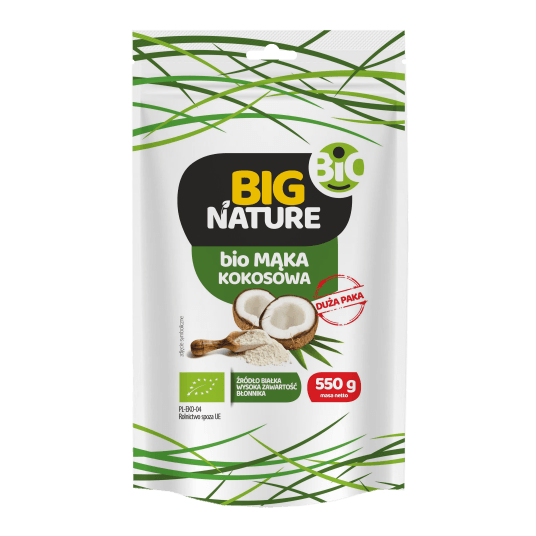 Opis: Opakowanie zawiera 550g mąki kokosowej.