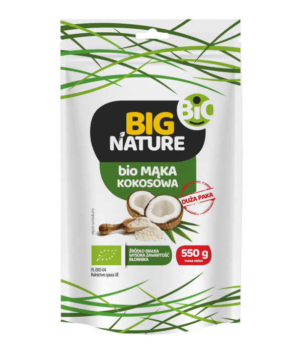 Ekologiczna mąka kokosowa, jest uzyskiwana z miąszu kokosa jako produkt pozostały po produkcji oleju i mleka kokosowego. Ma lekki posmak i aromat kokosa, ale nie jest słodka. Warto ją stosować ze względu na liczne właściwości prozdrowotne. Ekologiczna mąka kokosowa zawiera bardzo dużo błonnika i białka dlatego znajduję zastosowanie w dietach diabetyków i osób odchudzających się.