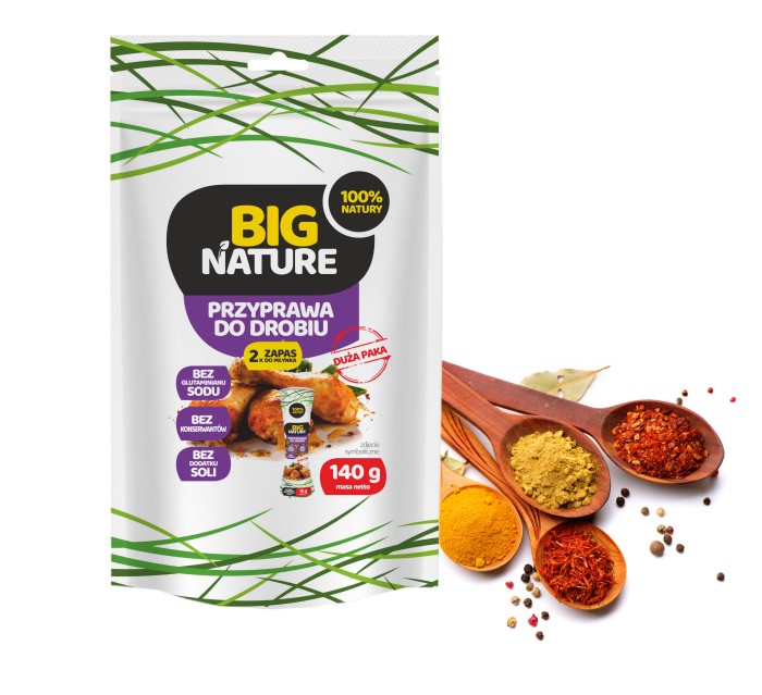 Mięso z drobiu jest bardzo popularnym i wysoko cenionym surowcem kulinarnym. Szczególnie polecane, z uwagi na niską kaloryczność i delikatny smak, jest mięso z kurczaka oraz indyka. Również smaczne potrawy można przyrządzić z kaczek i gęsi. Dla wzbogacenia smaku potraw z drobiu, nadania im oryginalnego aromatu, niezbędne jest jednak ich odpowiednie przyprawienie. Można stosować ją do nacierania wszystkich gatunków drobiu przed duszeniem, pieczeniem czy smażeniem. Przyprawa znajduje się w ceramicznym młynku wielokrotnego wykorzystania.
