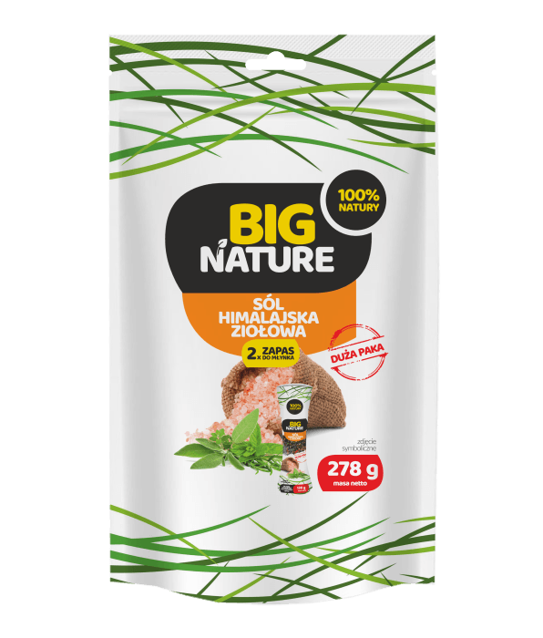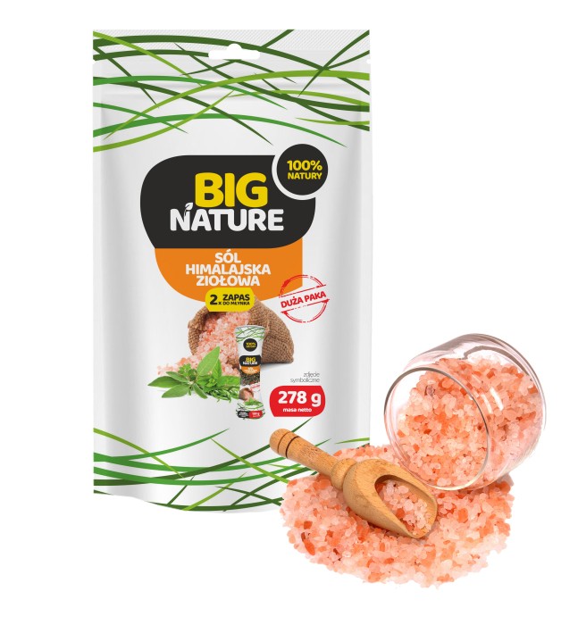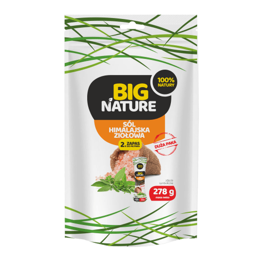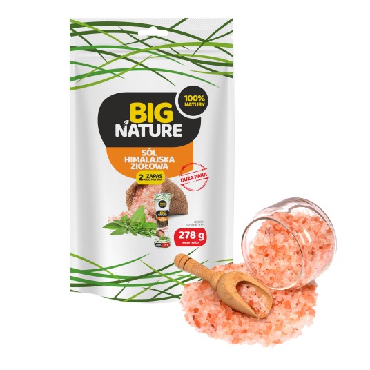 Składniki: sól himalajska różowa gruba 91,4%, mieszanka suszonych ziół w zmiennych proporcjach 8,6% (bazylia, oregano, lubczyk, tymianek).