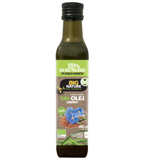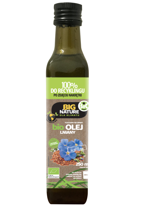 Opakowanie zawiera 250ml bio oleju lnianego tłoczonego na zimno.