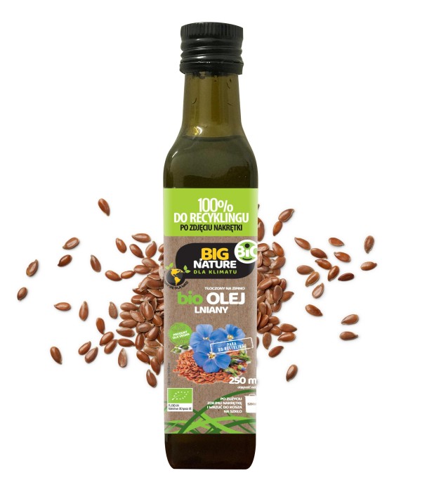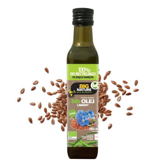 Opakowanie zawiera 250ml bio oleju lnianego tłoczonego na zimno.