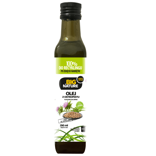Opakowanie zawiera 250ml oleju z ostropestu tłoczonego na zimno.