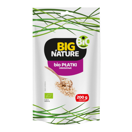 Składniki: 100% płatki orkiszowe pochodzące z kontrolowanych upraw ekologicznych.